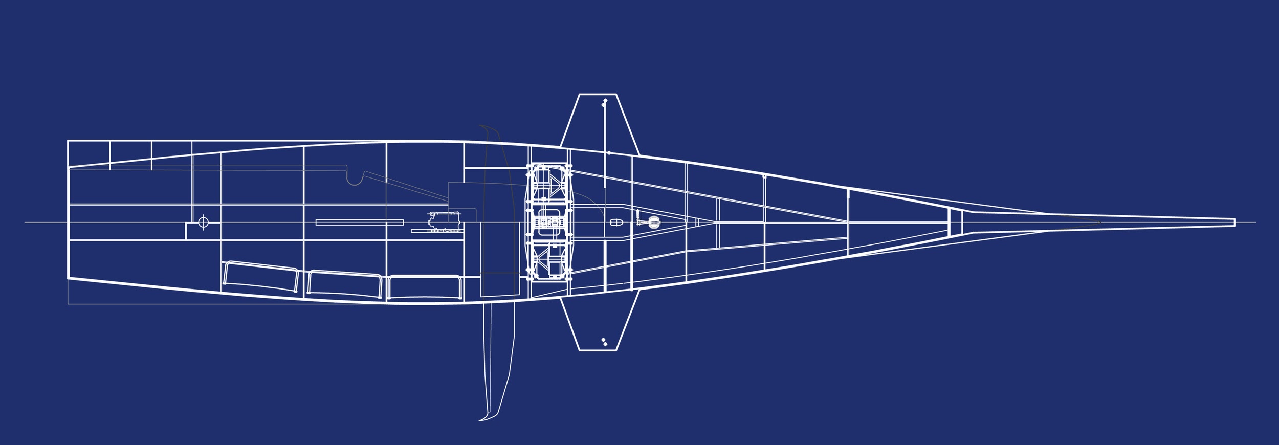 Dulcinea's deck layout clearly shows the integrated circular wing base. |