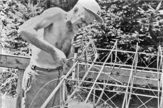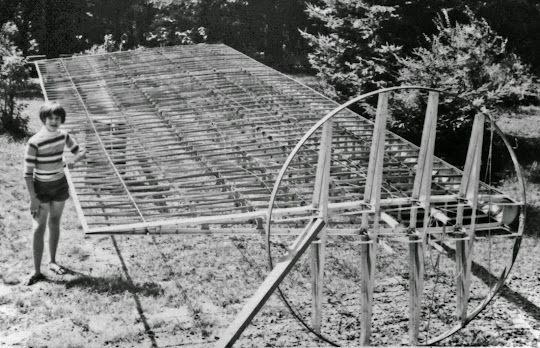 Steane assembling the frame of Mountain Lion's wing. (unknown photographer, from Lorhing Miller's collection) |