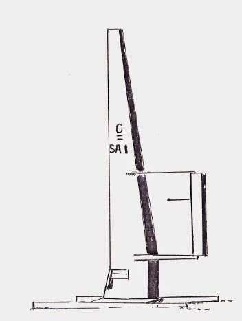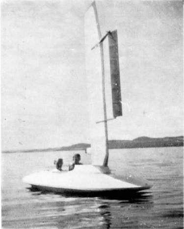 During the Second World War, Norwegian Fin Utne built Flaunder, a winged sailboat that featured a self-steering aftercanard. (AYRS collection) |  The Amateur Yacht Research Society produced this sketch of Splice in March 1976, indicating that a Russian researcher had proposed a similar closed cockpit on a land yacht in 1940. |